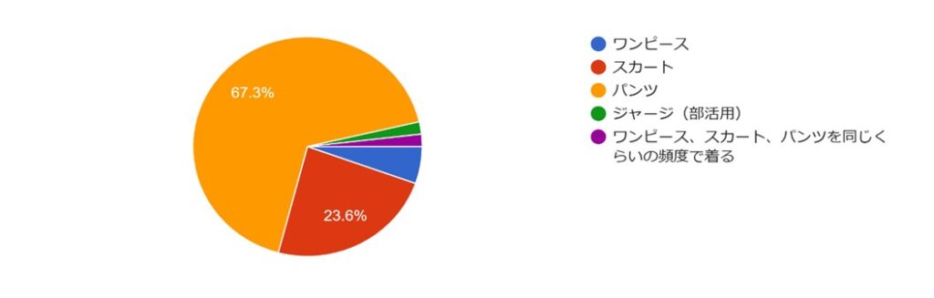 パンツが67.3%、スカートが23.6%、ワンピースが5.5%
