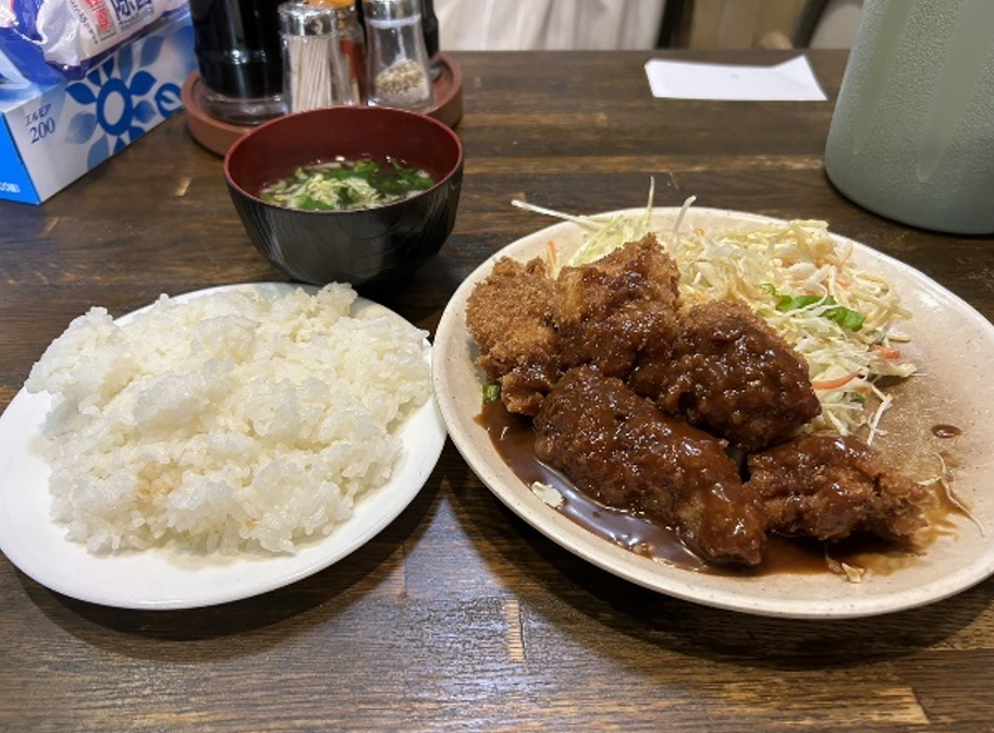 サックサクのチキンカツに濃厚なデミグラスソースがかかっていて、めっちゃ旨いです!
